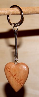 porte clef coeur avec prénom ( 7 caractères maximum) gravé sur une face, merisier ciré